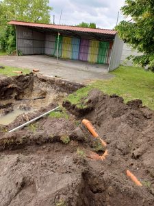 Od kilku dni trwa na terenie ROD KOLEJARZ ( okolicy świetlicy) budowa zbiornika na nieczystości (szamba). Przy budowie pracują zarówno działkowcy ( z prezesem i v-ce prezesem na czele) jak i firma zewnętrzna. Inwestycja została dofinansowana prze Urząd Gminy i Miasta Nowe Skalmierzyce.